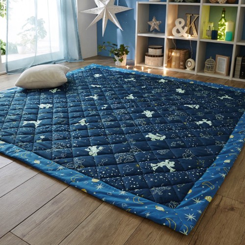 宇宙に迷い込んだような星座柄のキルトラグ。
