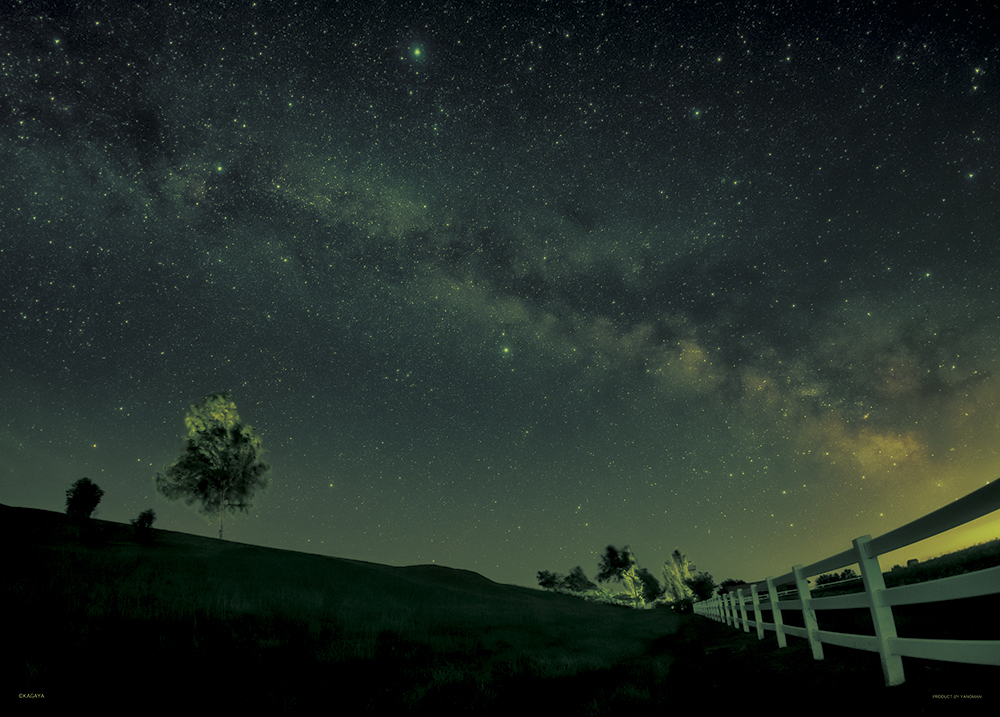「ハルニレの木と天の川(北海道)」は、特殊インクにより蓄光して暗い場所で幻想的な光を放つ、光るパズルです。