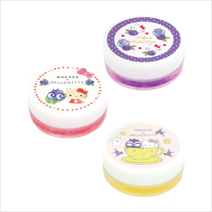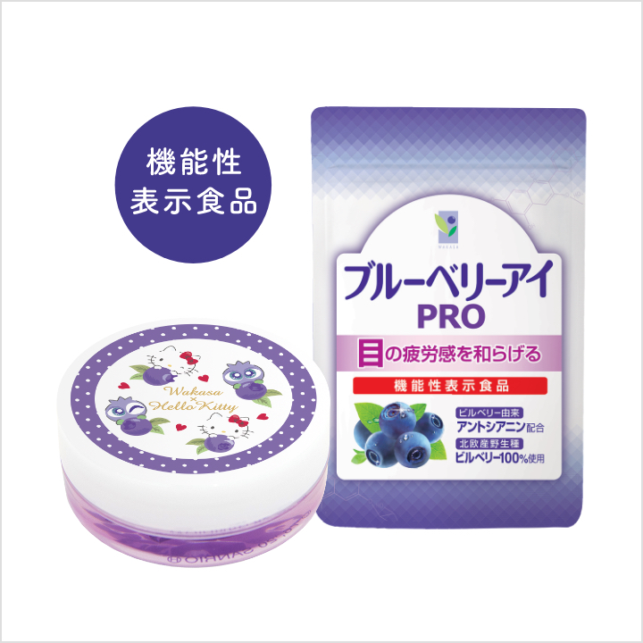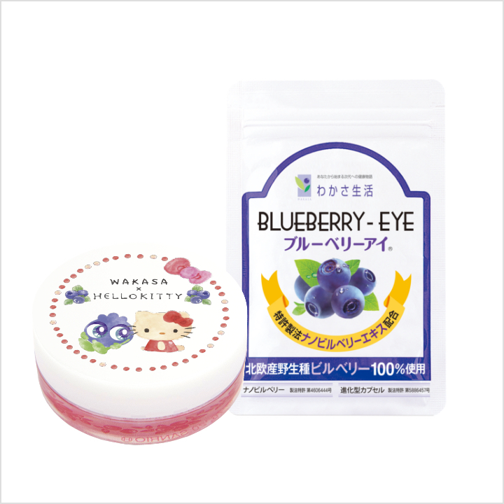 ブルーベリーのサプリメントでおなじみの「わかさ生活」のキャラクター、ブルーベリーの妖精「ブルブルくん」と、人気キャラクターにもかかわらず仕事を断らない「ハローキティ」のコラボ企画。