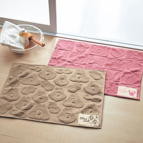 シンプルなベージュを基調とした「チップ&デール」デザインのバスマット。