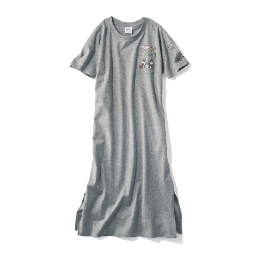 杢グレーを基調とした「チップ&デール」デザインのTシャツワンピース。