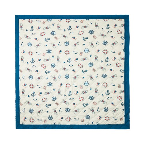 さらに、舵や旗、イカリや浮き輪などのモチーフから「ドナルド」の帽子まで、ラグにぎっしりとデザインされています。