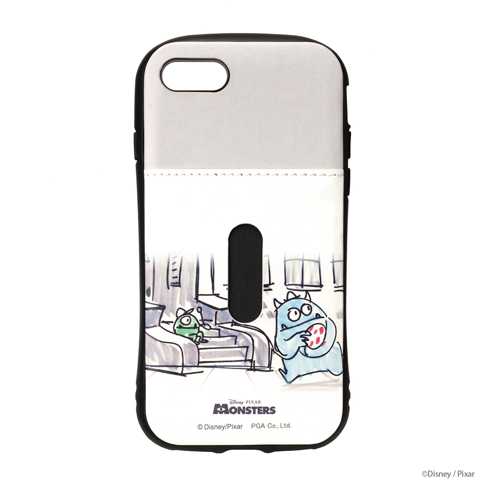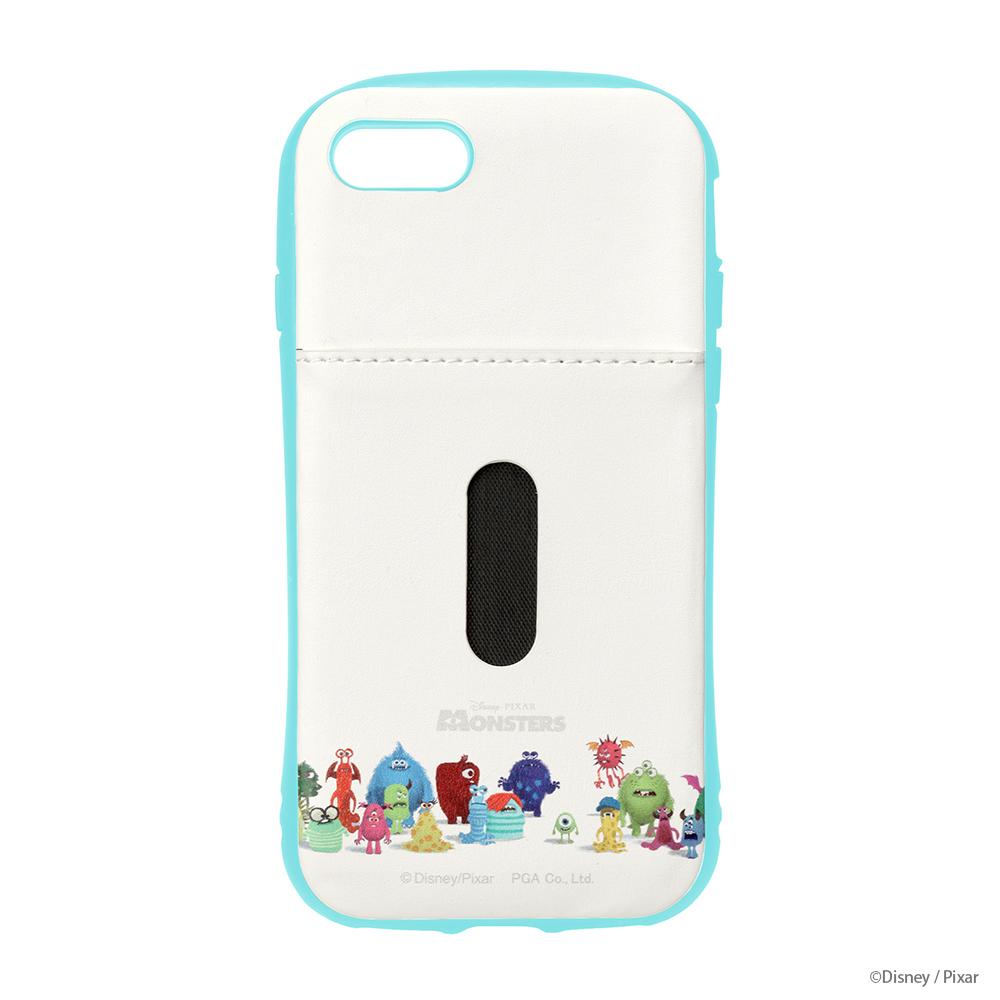 清潔感のあるホワイトカラーをベースにしたケース下部に、ユニークなモンスターたちがレイアウトされています。