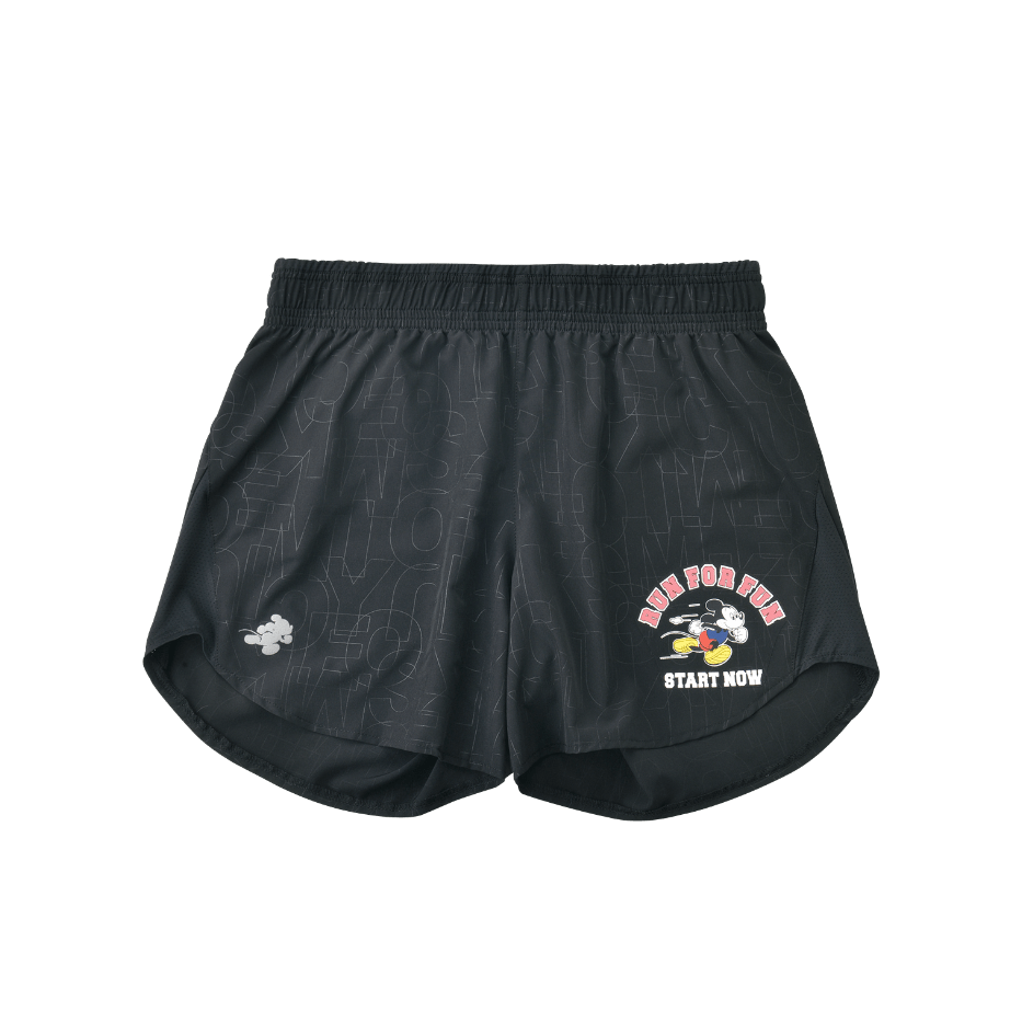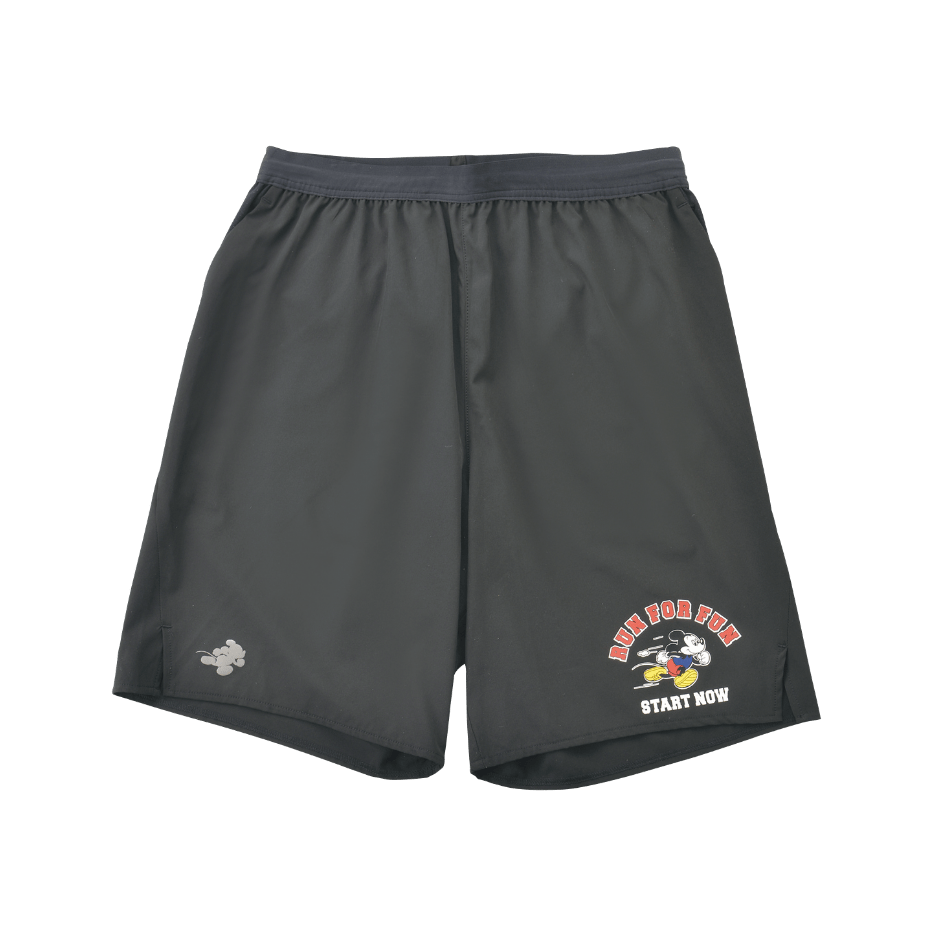右裾にシルエット、左裾に躍動感のある「ミッキーマウス」がそれぞれプリントされたランニングパンツ。