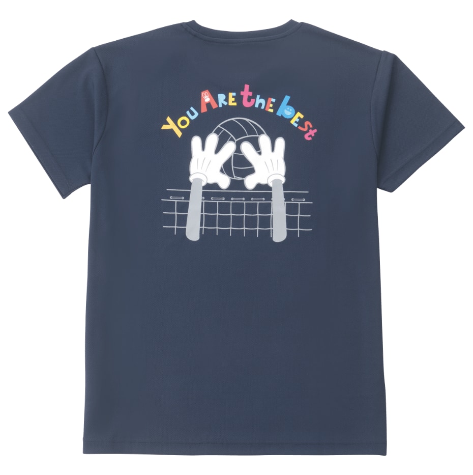 バックプリントにはバレーボールをブロックする「ミッキーマウス」の両手が大きくプリントされています。