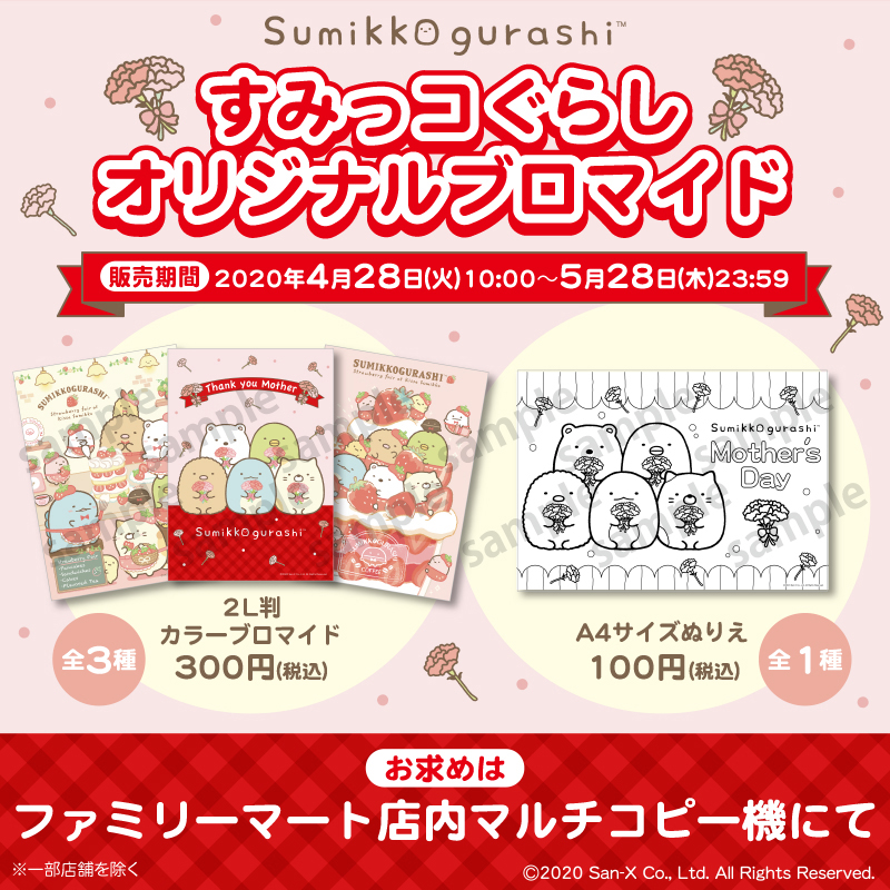 「すみっコぐらしオリジナルブロマイド」は、ファミリーマートにて2020年4月28日(火)から5月28日(木)まで期間限定販売です。