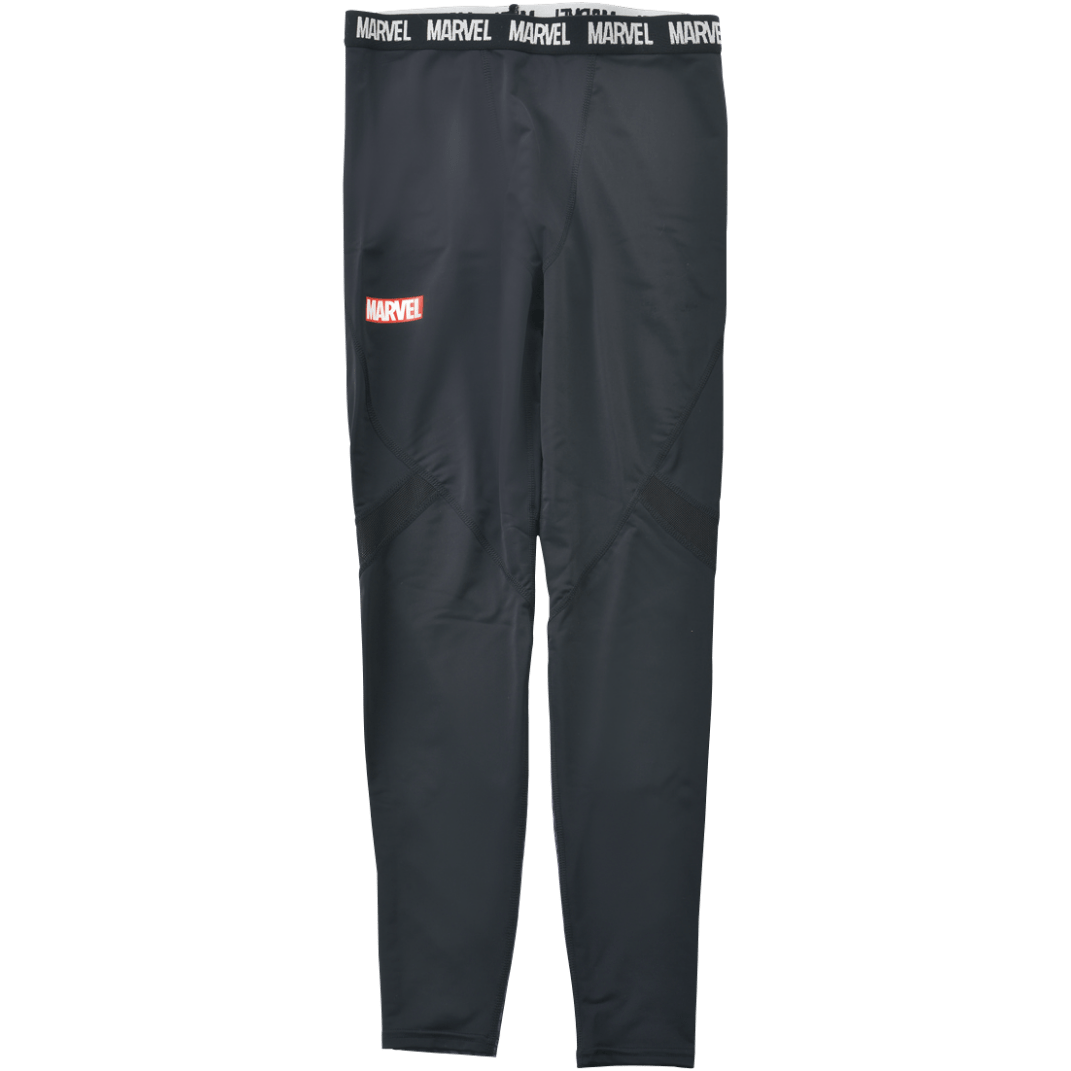 右足太もも部分に「MARVEL」ロゴがワンポイントであしらわれた「ロングタイツ」