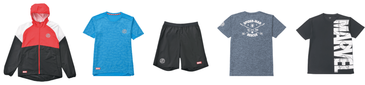 「マーベル」2020春夏スポ ーツコレクションには、ランニング、バスケットボールウェアとして愛用できるデザイングッズが豊富にラインナップ。