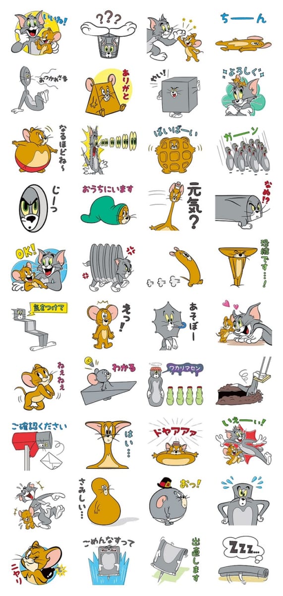 「トムとジェリー」の楽しいスタンプが、友達とのトークを盛り上げます。