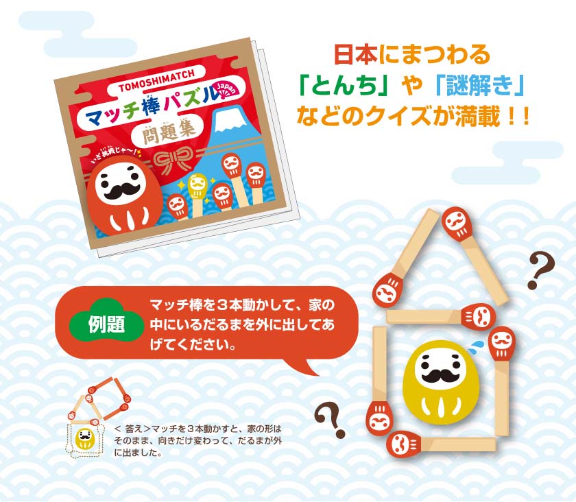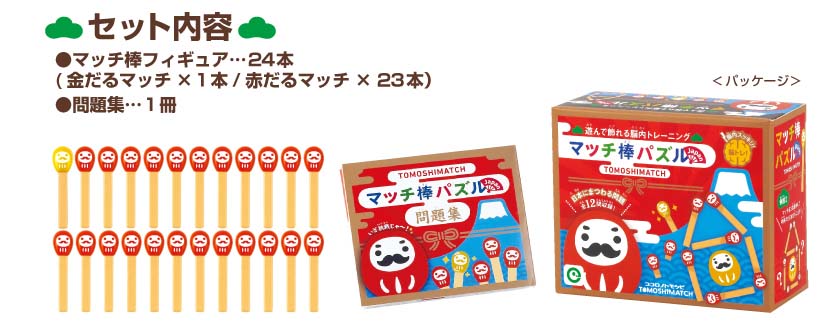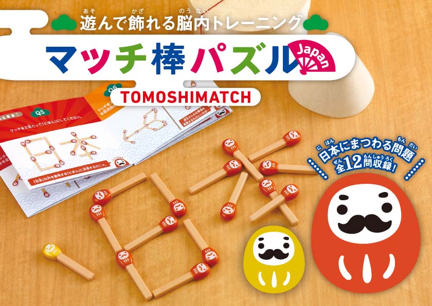 人気の「脳トレ」マッチ棒パズルシリーズに、かわいい「だるま」のマッチ棒フィギュア付きの「マッチ棒パズルJAPAN」が登場!