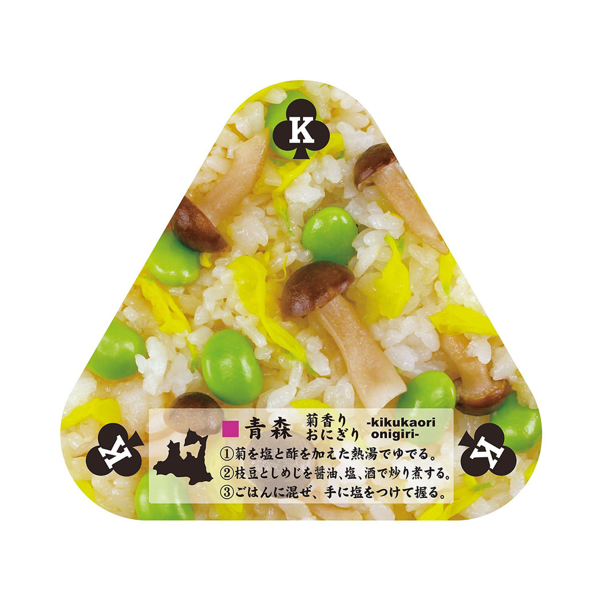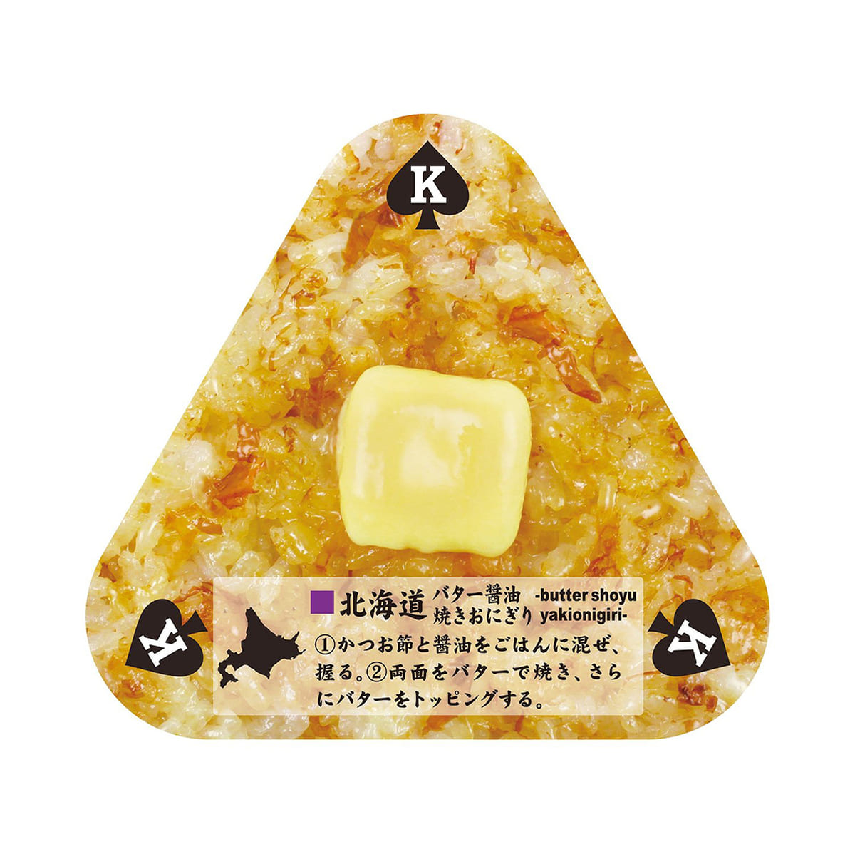 スペード柄には辛子明太子や昆布などの定番おにぎりのほか、醤油の実やけんさ焼きなどをプリント。