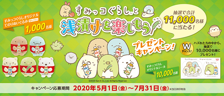 おいしい浅漬けを楽しんで、かわいい「すみっコぐらし」のグッズが当たるうれしいキャンペーン!