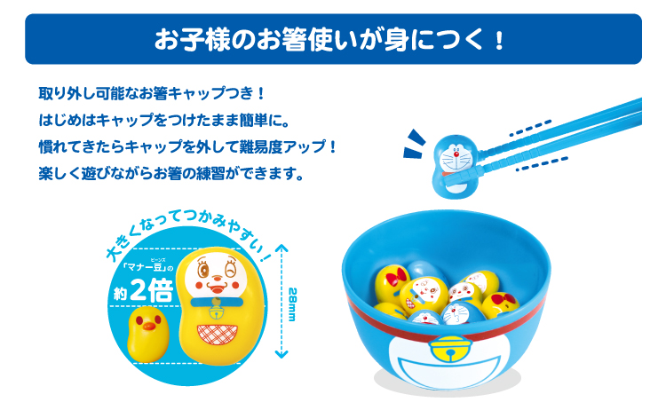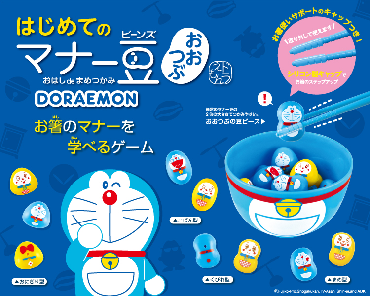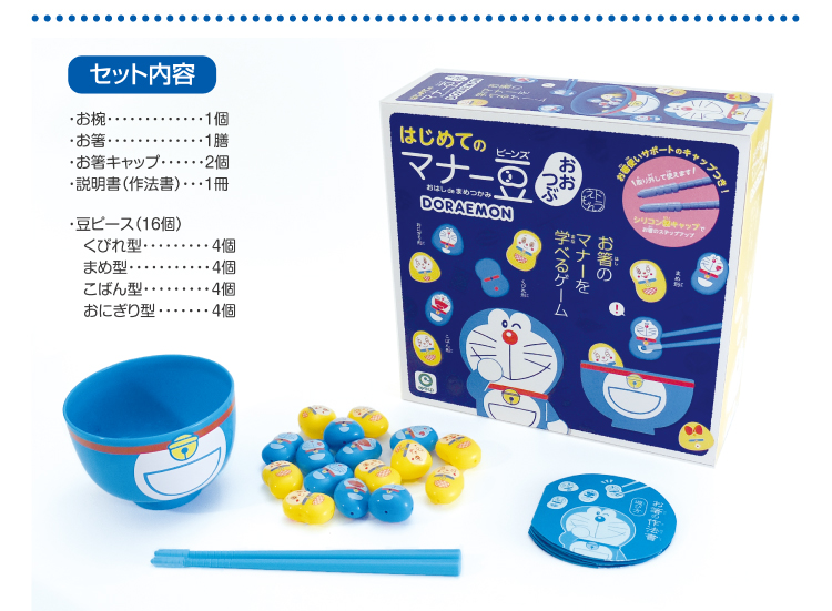 遊びながら楽しくお箸のマナーを身につけられる『はじめてのマナー豆(ビーンズ)おおつぶ』に「ドラえもんver.」が登場!