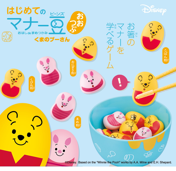 遊びながら楽しくお箸のマナーを身につけられる『はじめてのマナー豆(ビーンズ)おおつぶ』に「くまのプーさんver.」が登場!