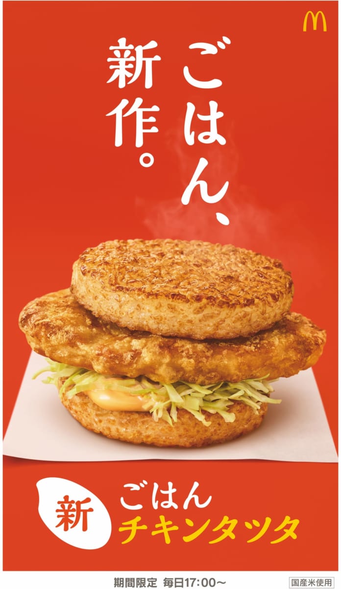 マクドナルドの人気メニュー「チキンタツタ」をお米ではさんだ「ごはんバーガー」の新作メニューが登場です!