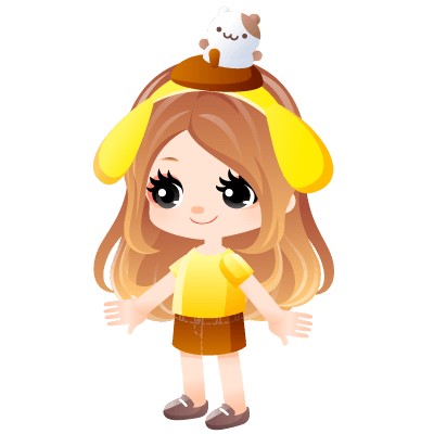 「ポムポムプリンカチューシャ」を身に着けたアバターイメージ。