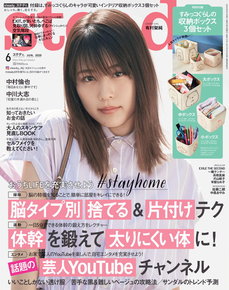限定発売の『steady.6月号増刊』も、初夏の装いがすてきな有村架純さんが表紙です。