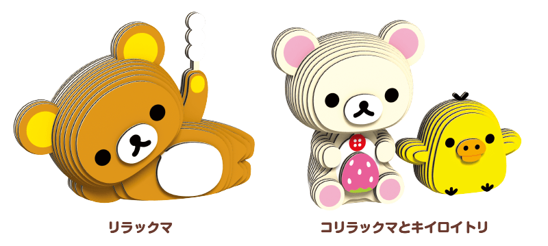 「リラックマ」と「コリラックマとキイロイトリ」の3D組み立てパズル「EUGY」(ユーギー)は、全国の文具店、玩具店、雑貨店、書店にて2020年5月中旬販売開始です。