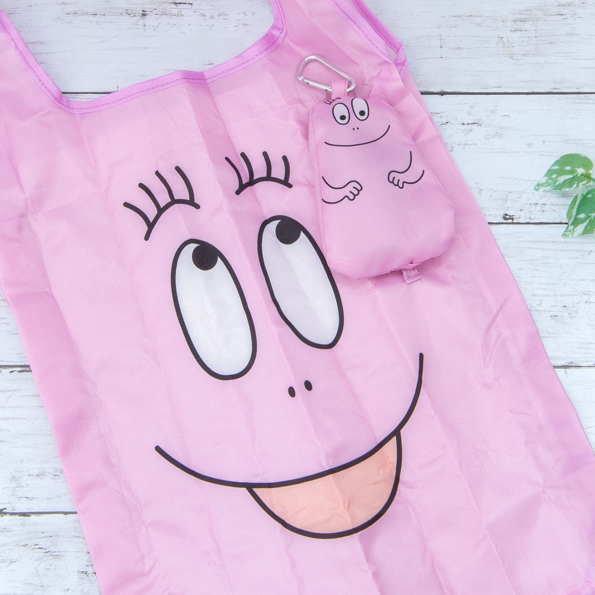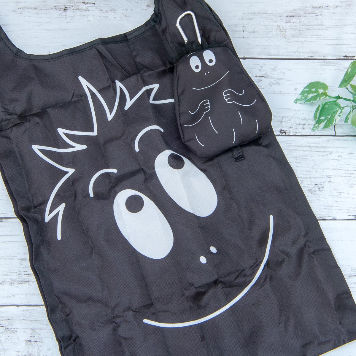 エコバッグには、「バーバモジャ」のフェイスが大胆にあしらわれています。