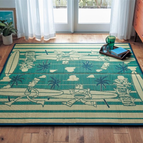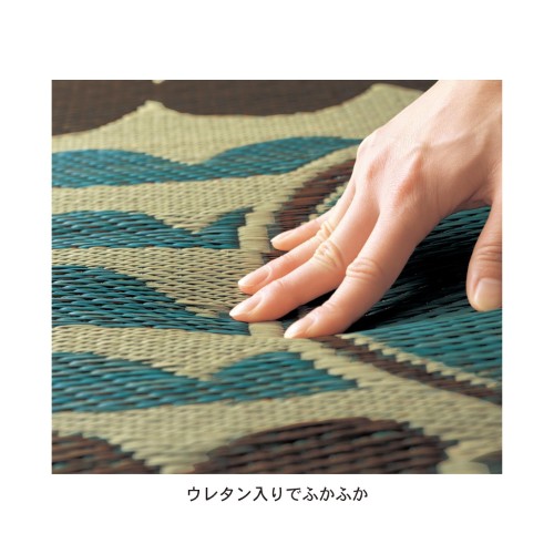 畳の素材の、い草を使い、中に約12mmのしっかりと厚みのあるウレタンを入れたオシャレなラグ。