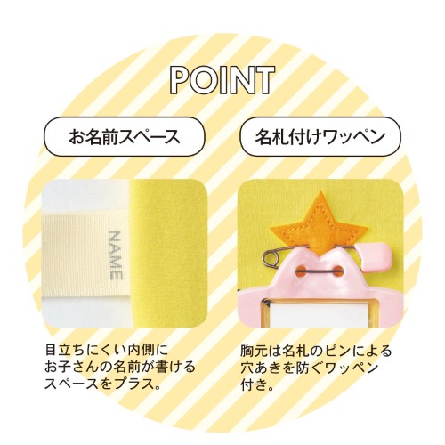 お名前スペースや名札付けワッペンが付いているので、通園や通学時にうれしいですね。