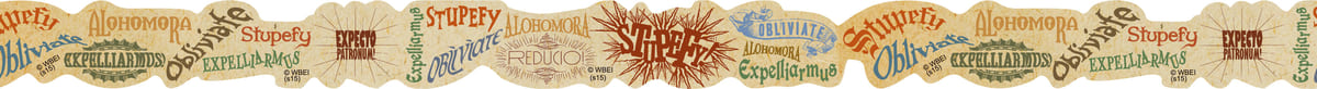 「ステューピファイ(麻痺せよ)」、「オブリビエイト(忘れよ)」、「アロホモラ(開け)」など、「ハリー」たちが劇中で使った魔法の呪文のロゴデザインがたっぷり収録されています。