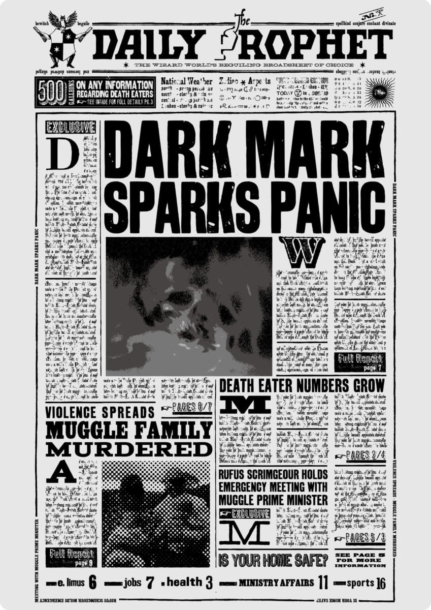 フロントは「闇の印」が取り上げられた日の日刊予言者新聞紙面をイメージ。