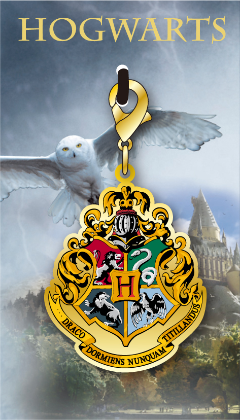 「ホグワーツ魔法魔術学校」の校章がデザインされたファスナーチャーム。