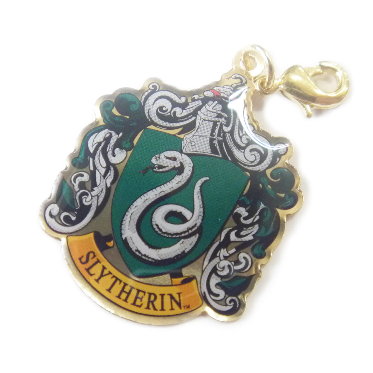 「ドラコ・マルフォイ」が所属する「スリザリン寮」の寮章をデザインしたファスナーチャーム。