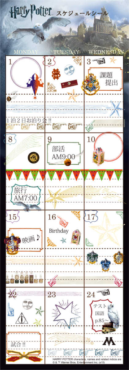 ハリー・ポッター魔法ワールドの様々なモチーフアイコンのステッカーがセットになっています。