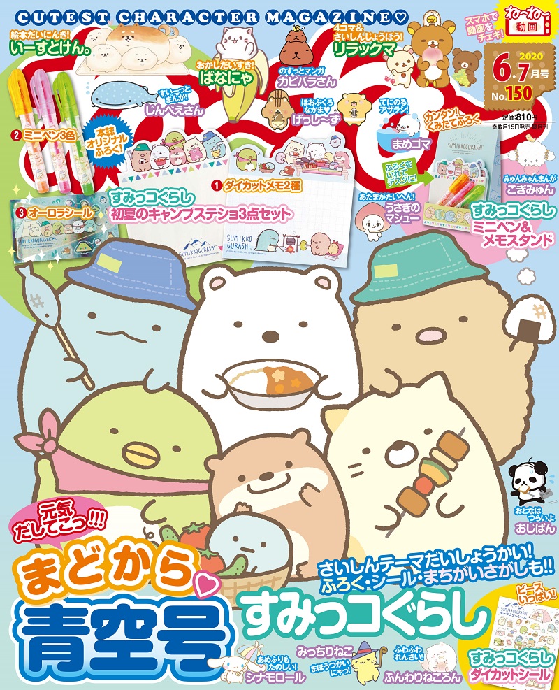 キャラマガジン『ね~ね~』の2020年6・7月号は、「すみっコぐらし」キャンプステショ3点セットが付録!
