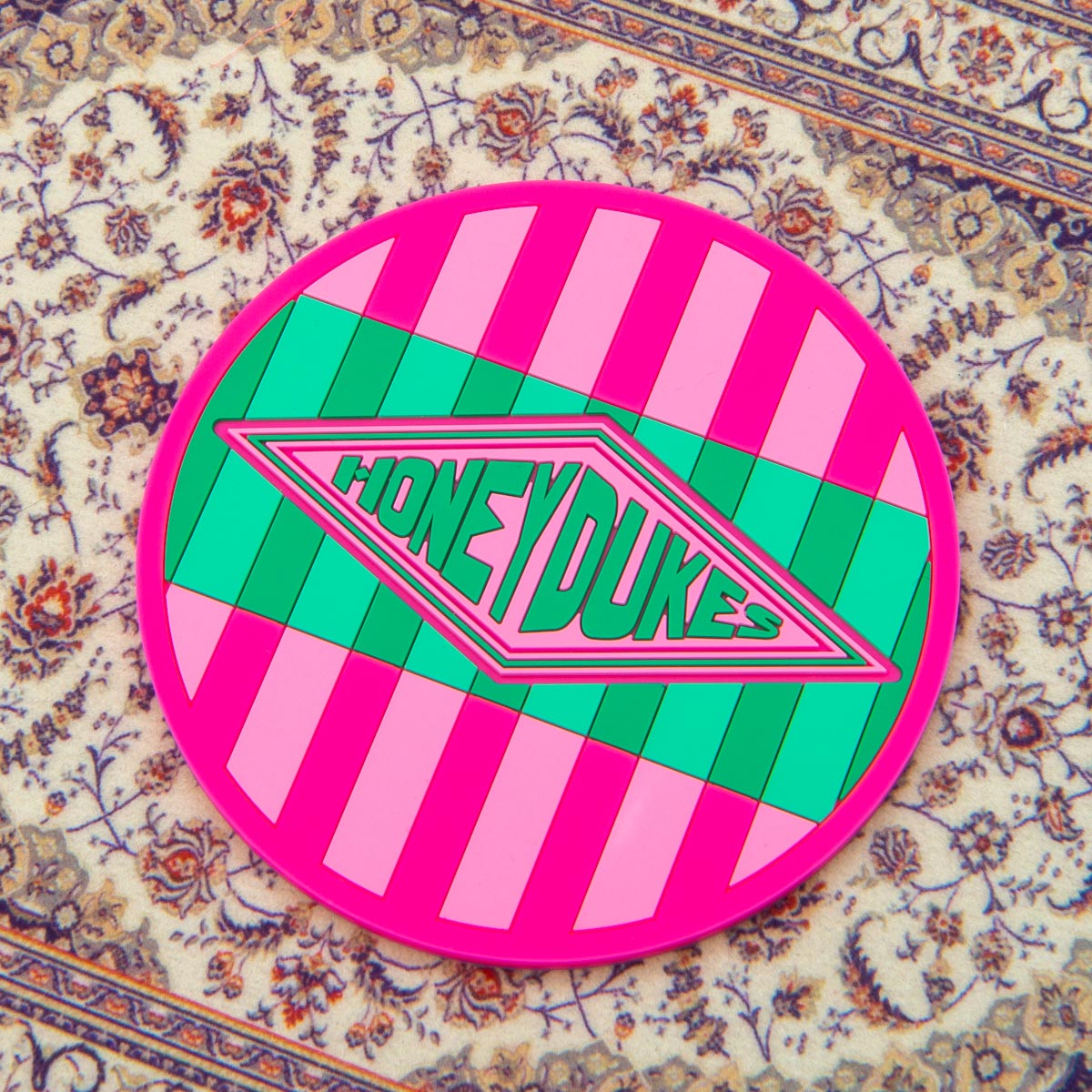 「ハニーデュークス」ロゴデザインのラバーコースター。