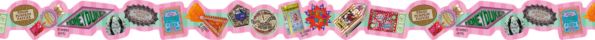 バックには「バーティ・ボッツの百味ビーンズ」や「すっぱいペロペロ酸飴」、「爆発ボンボン」などのお菓子のパッケージがデザインされています。