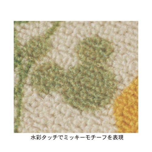 懐かしさのある色調の苺&草花モチーフに、さりげないミッキーモチーフがマッチしたキュートなラグ。