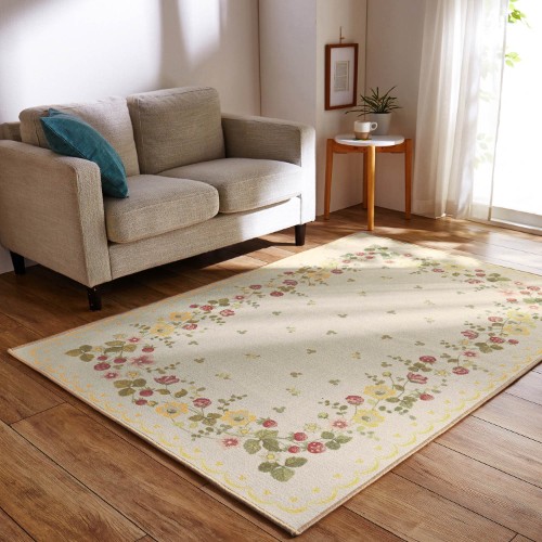 ベルメゾン ディズニー「水彩タッチのイチゴ柄プリントラグ」