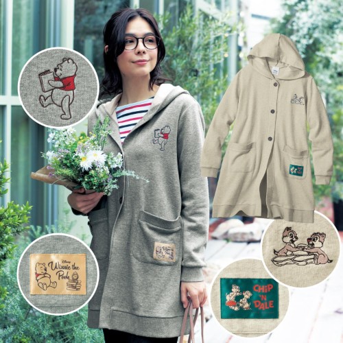 チップ&デール・プーさんの刺繍とネーム入り!ベルメゾン ディズニー「ボタン開きロングパーカ」