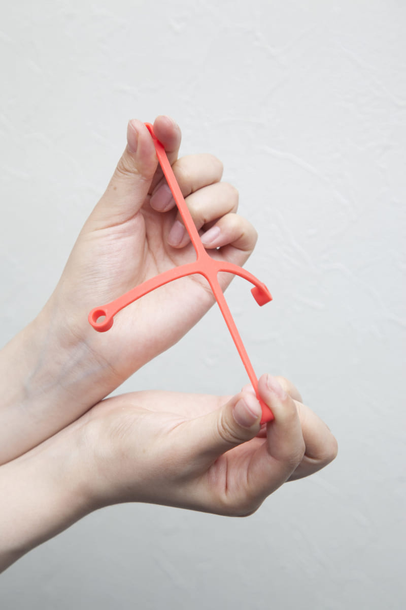 シリコン製のバンドは伸縮性と柔軟性があるので、形を変えて壁やボードにピンでとめることが可能。