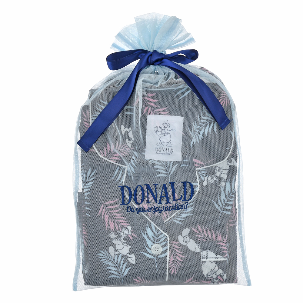 「ドナルドダック」のネーム刺しゅうが施された巾着ポーチ付きなので、お泊り時も愛用可能。