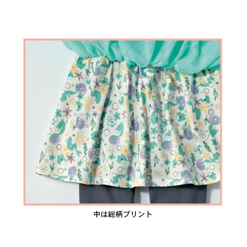 ふんわりと広がるチュールの下から透けて見える、キュートな総柄デザインがオシャレ度をアップしてくれます!