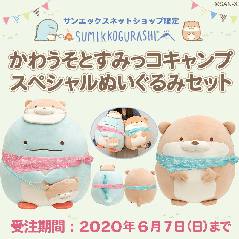 「かわうそとすみっコキャンプスペシャルぬいぐるみセット」は、サンエックスネットショップ限定で、2020年6月7日(日)まで注文受付中です。
