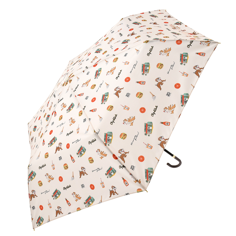 ポップなカラーでまとめられた「折りたたみ傘」の「チップ&デール」バージョン。