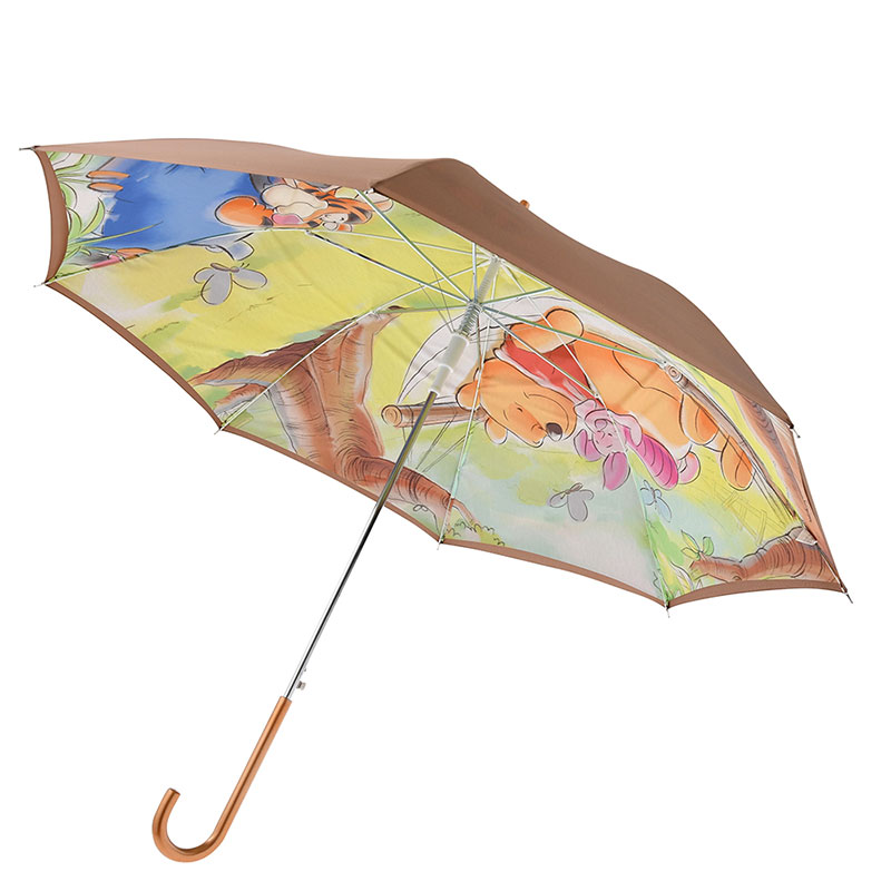 アースカラーのブラウンで『くまのプーさん』の世界観が表現された、ジャンプ式傘。