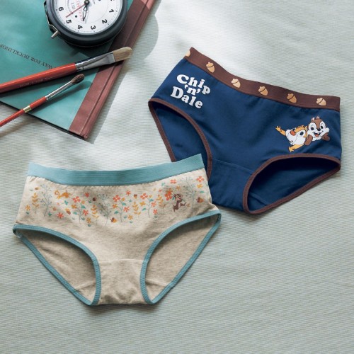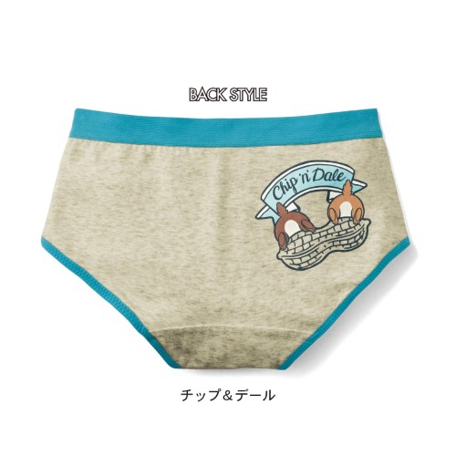 ワンポイント柄の前には左右に「チップ」と「デール」のプリントが、後ろにはキュートなお尻のプリントが施されています。