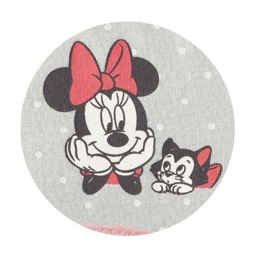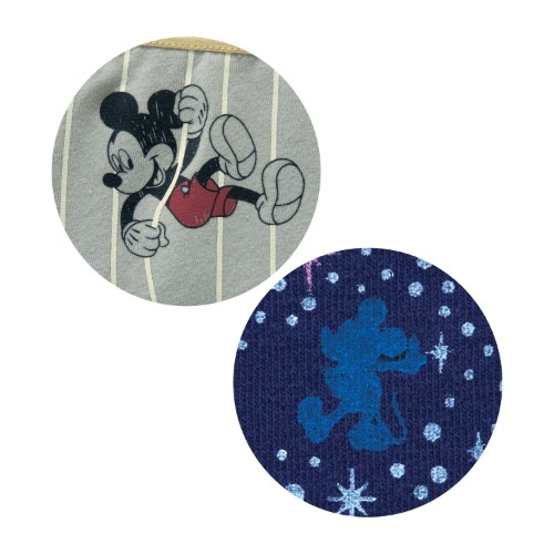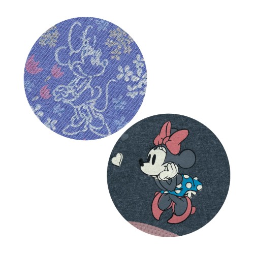 ミニーフェイスをレース風にアレンジした一枚と、猫の「フィガロ」と共にプリントされたドット柄がセットになっています。