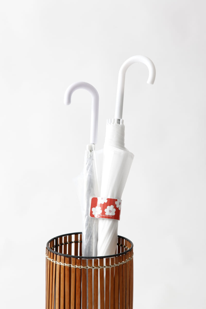 おしゃれな傘マーカーとして使え、たたむ時に手を濡らさないですむ便利グッズ。