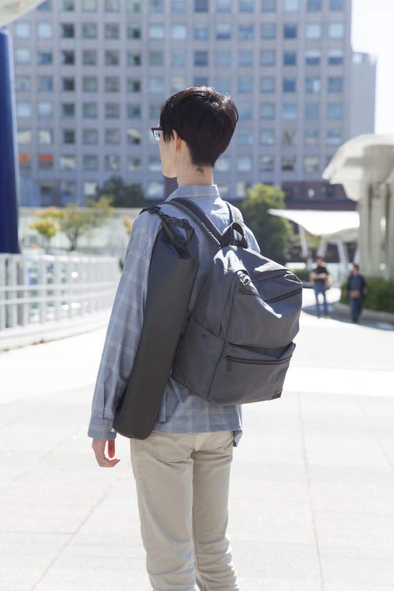 バッグの縦幅は中に入れるタペストリーのサイズに合わせて調節でき、手で持っても、肩にかけても使えます。