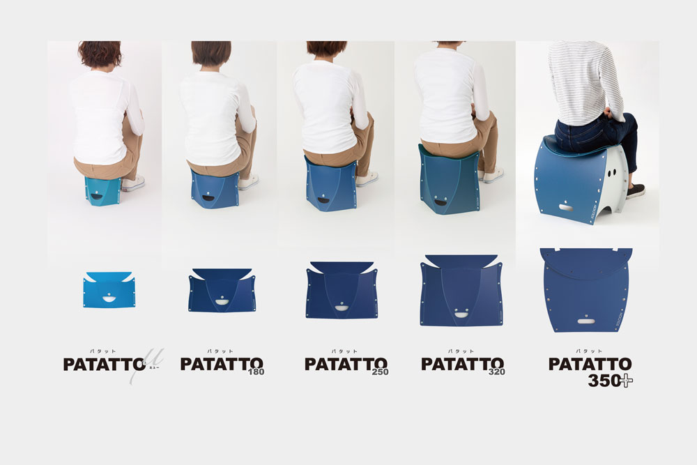 ソルシオンより発売されている、開いて押すだけの折りたたみイス「PATATTO」シリーズ。