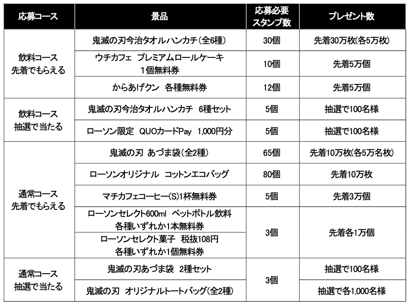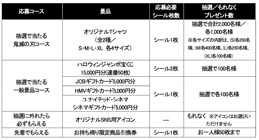 対象商品を購入し、レシートのスタンプをためると先着・数量限定で『鬼滅の刃』のオリジナルグッズがもらえるほか、抽選で当たるコースも用意されたキャンペーンです!