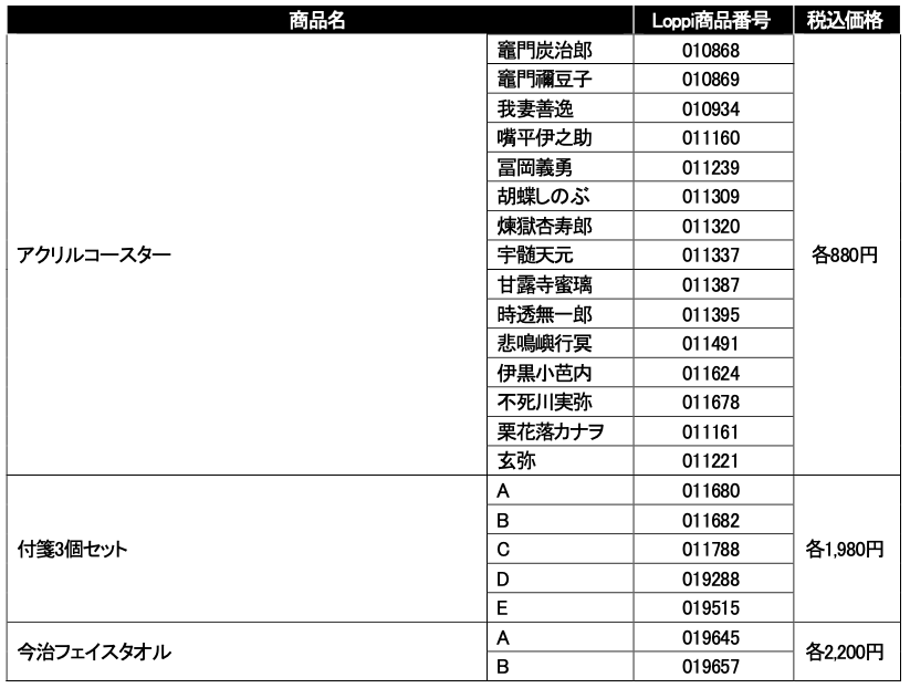 『鬼滅の刃』オリジナルグッズがLoppi・HMV&BOOKS onlineで発売。