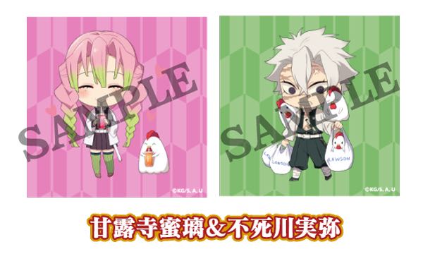 ドリンクを飲む「甘露寺蜜璃」と「からあげクン」を肩にのせた「不死川実弥」の2種類がプレゼントされます☆